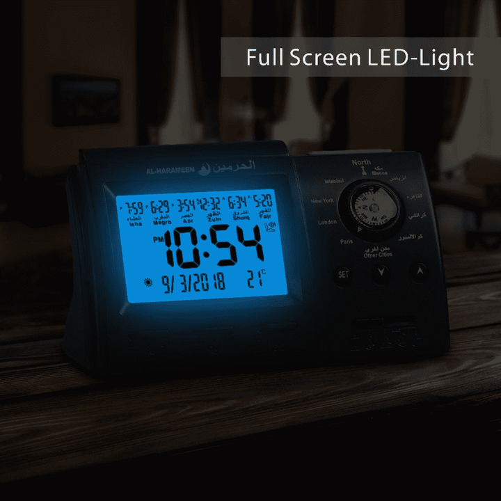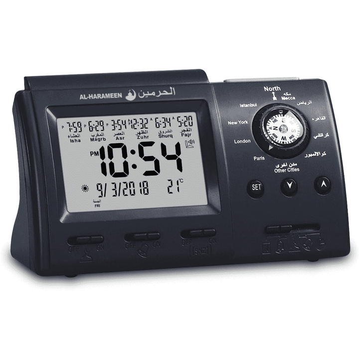 Muslim Prayer Times Bedside Clock | Makkah in LCD Clock (Black)