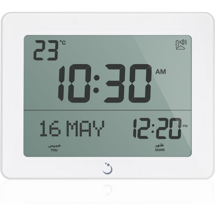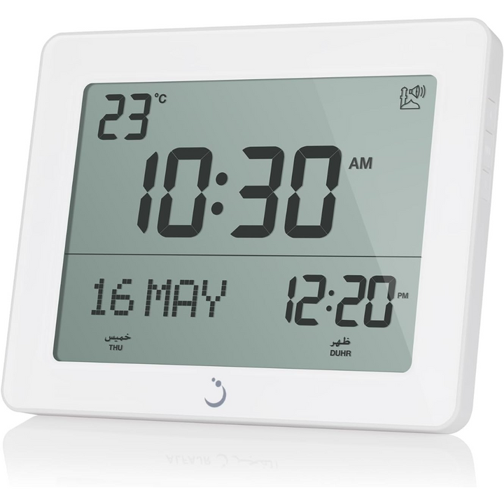 Lukadah Azan Alarm Clock - Automatic Athan 5 Times in 5 Different Voices - Manual for USA Cities (White)