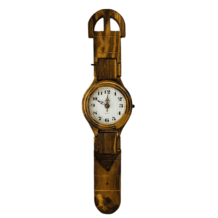 Quality Handmade Vintage Wood Wall Clock Wrist Shape Wooden Farmhouse Hanging Clock.