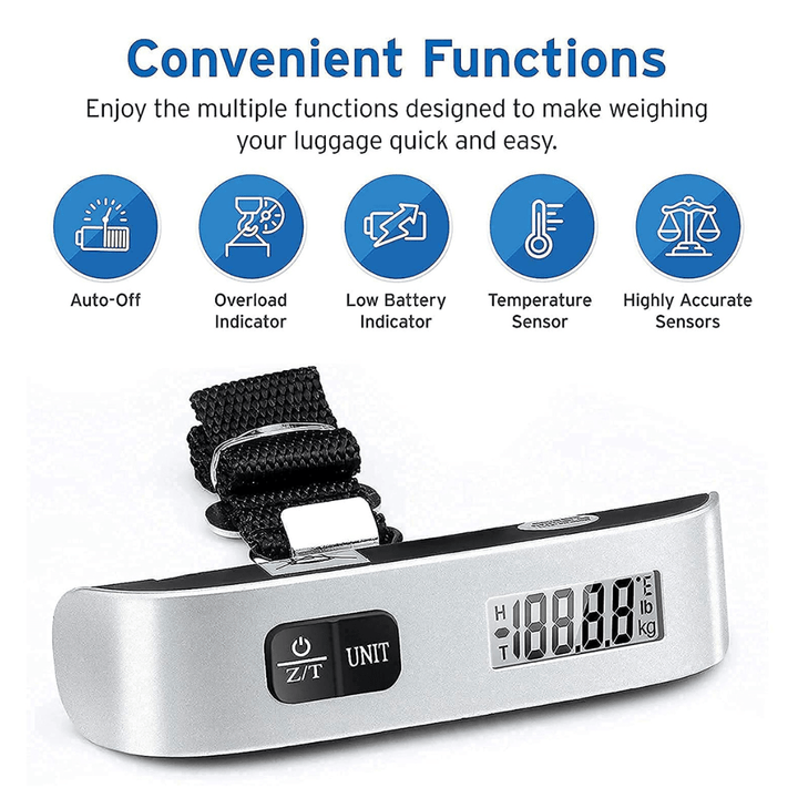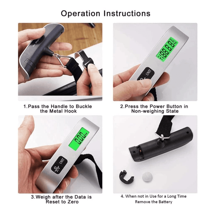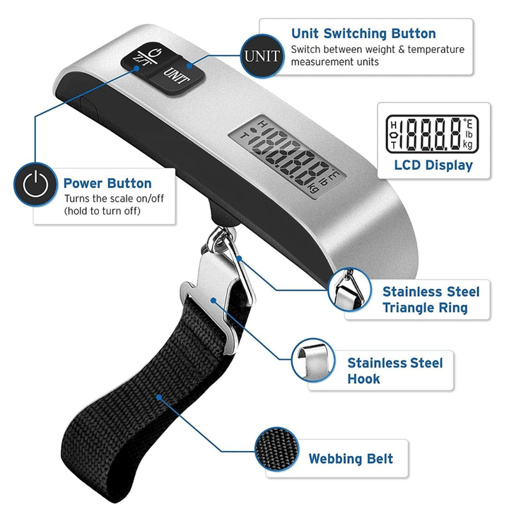 Crafted with a durable stainless steel body and equipped with an easy-to-read LCD, this scale offers precise weight readings up to 50kg (110lbs). Whether you're weighing a small carry-on or a large suitcase, the digital luggage scale ensures you pack confidently without the worry of overweight surprises.