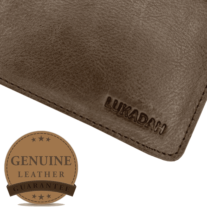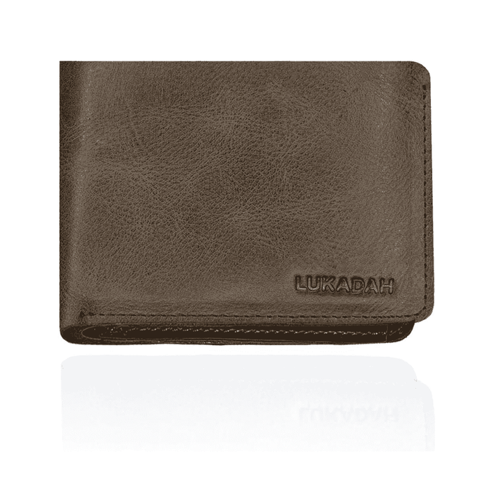 LUKADAH - Wallet Leather Genuine Full Grain Card Holder (Brown Seaweed )